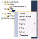 In my example, I created a “test” extraction point for SSIS that is pulling from a project that I have already deployed to the server. By right-clicking on that extraction point, you now have two steps to take: